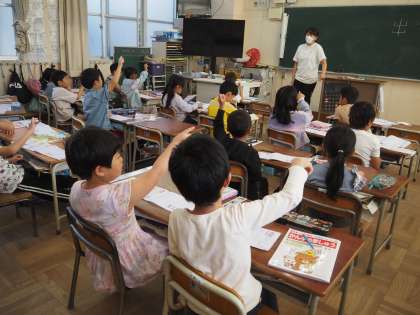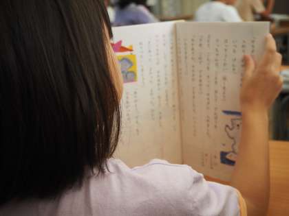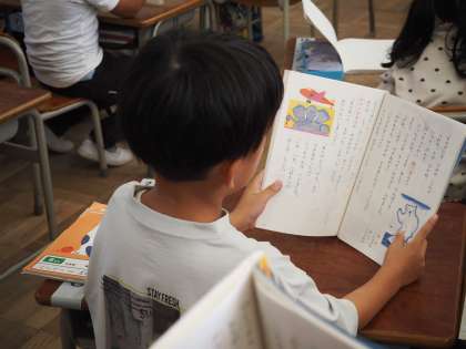 まずは、漢字ドリルを使って、漢字の筆順や形をていねいに覚えていました。そのあと、教科書教材「サラダでげんき」をみんなで順番に音読しました。