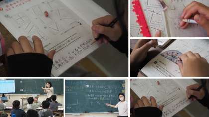 今日は、2本の直線が直角に交わっていることを垂直ということについて学習しました。子どもたちの中には、分度器を当てて直角であることを確かめている子もいました。