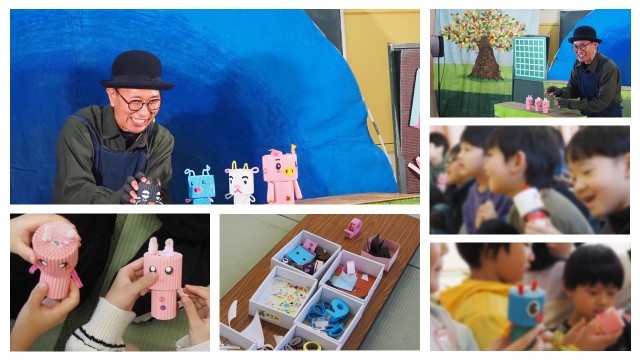 ただ劇を鑑賞するのではなく、子どもたちもかわいい動物をつくりました。人形劇を見たり、制作したりと体験のある人形劇で、子どもたちは笑顔いっぱいワクワクしながら参加していました。
