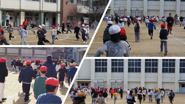 今日は、1・3・5年のかけ足の日です。2時間目と3時間目の間の15分休憩に、子どもたちは元気に運動場でかけ足し、体力をつけています。