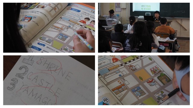 英語で道をたずねられたときの相手のことばや自分たちが説明するときの伝え方について学習しました。ここでは、go straight、leftやright等を聞き落とさないようにしたり、この単語を使って答えられたりすることです。大事なことは、たくさんの英単語で訪ねてきたときに、大事な単語を聞き落とさないことです。