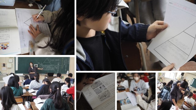 子どもたちは教科書から「なぜ手塚治虫が漫画家をめざしたのか」読み取っていました。その読み取りをもとに、今日は、思考ツールの一つである「ピラミッドチャート」を使って手塚治虫はこういう人物であると、考えをしぼっていきました。