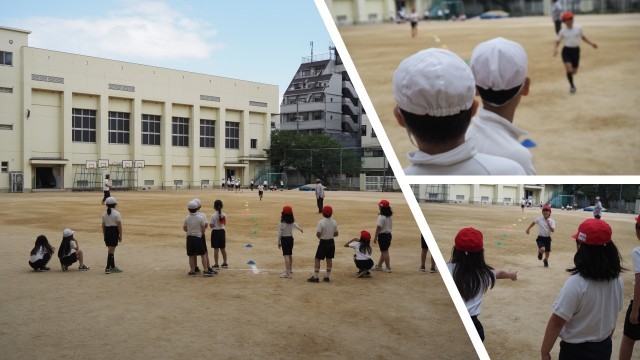 2チームに分かれて、競争しました。50メートルのコースを、それぞれチームが反対側からスタートします。一直線のコースなので、ちょうど25mあたりですれ違います。とても盛り上がって、チームで走りを競い合いました。