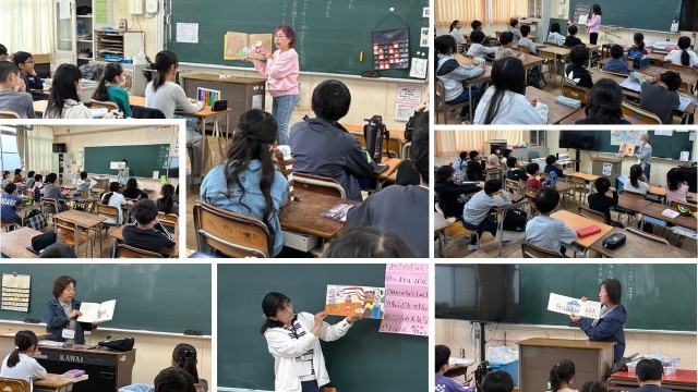 各教室では子どもたちが読み聞かせを楽しそうに聞いています。