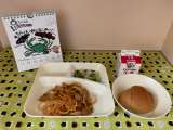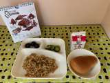 9月25日(金) 今日の給食は、焼きそば、きゅうりのしょうがづけ、ぶどう(巨峰...