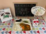 9月18日(金) 今日の給食は、他人丼、とうがんのみそ汁、金時豆の煮もの、牛乳...