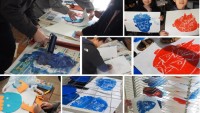 1年の図画工作は、紙版画をしました。2月3日の節分にちなんで、赤おに・青おにをつ...