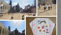 1年生は、この日生活科のむかしあそびの一環として、運動場で自分たちの作った凧をあ...