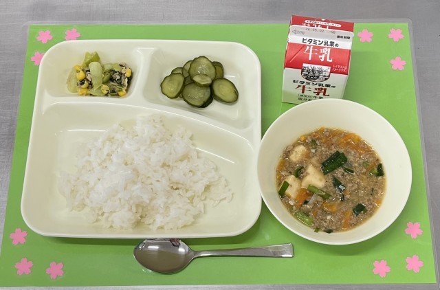 《今日の献立》マーボーどうふ、きゅうりの中華あえツナとチンゲンサイのいためものごはん、牛乳〜マーボーどうふ〜 マーボーどうふは、中国の四川料理の代表的な料理です。とうふとひき肉を使い、トウバンジャンな...