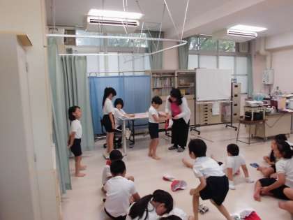 測定の前に、保健の先生から歯について教えてもらいました。