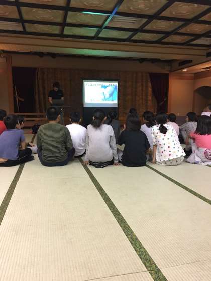 鳥羽水族館の飼育している種類の数やジュゴンとマナティーの違いについて教えてもらっています。