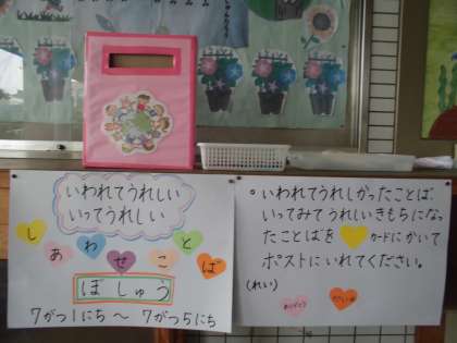 友達のいいところをたくさん見つけて、幸せいっぱいの学校にしましょう。