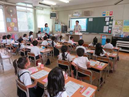 昼休みに保健環境委員会の発表と5時間目に歯の健康教室の授業を行いました。