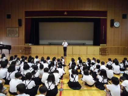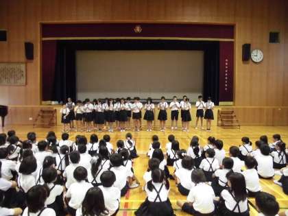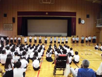 1学期の振り返りでは、3年生と6年生の子どもたちが、できるようになったことや思い出、音読やリコーダーの発表をしてくれました。