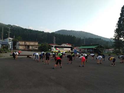 2日目の始まりです。朝の山の涼しさに子どもたちは驚いていました。
