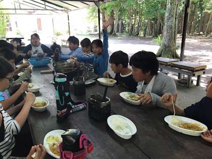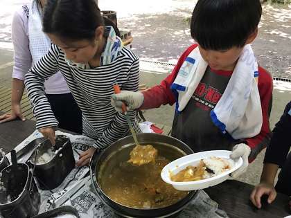 カレーが完成しました。みんなで協力して作ったカレーは、とてもおいしかったようです。