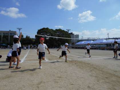 かけっこでは、一生懸命にゴールをめざして走りました。