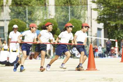 「台風がくるぞ」では、友だちと一緒に棒を持って走りました。遠心力に耐えながら、精一杯走っていました。
