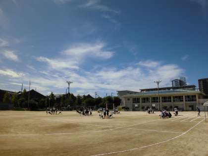 さわやかなに秋空の下、5・6年は運動場で団体演技の練習をしました。音楽のリズムに合わせて元気に踊ったり、三人組になって技をつくったりしていました。技ができたとき、本当にうれしそうな表情をしていました。一人一人が一生懸命に頑張っていました。