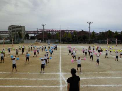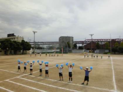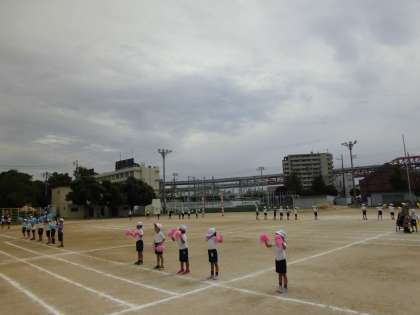 1・2年はポンポンを持って団体演技の練習をしました。カラフルなポンポンを振って笑顔いっぱい、元気いっぱいに踊っていました。