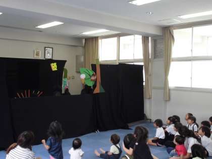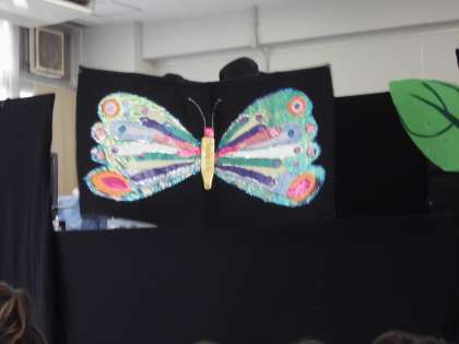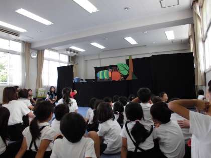 1年生は今日の3時間目に築港キッズの人形劇を鑑賞させていただきました。「はらぺこあおむし」の人形劇では、あおむしがきれいなちょうちょになった時には、「きれい!」と大きな歓声が上がっていました。とてもお行儀よく鑑賞することができました。築港キッズの皆さんありがとうございました。
