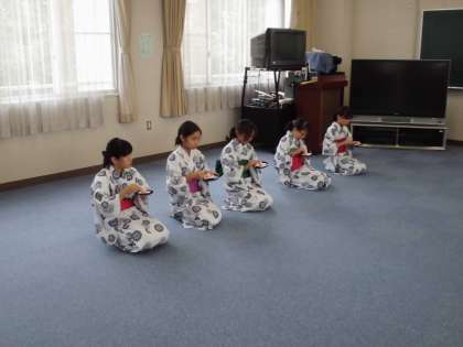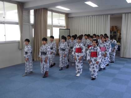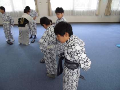 1時間目、講師の先生を招いて5年生は着物の着付けを行いました。2時間目は着物を着ての礼の仕方や歩き方、お菓子やお茶の運び方、そして座り方など一つ一つ美しい所作を教えていただきました。そして最後にはお菓子とお茶をいただきました。5年生では25日の学習参観で保護者の方と一緒に伝統文化の学習を行う予定です。