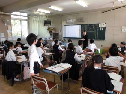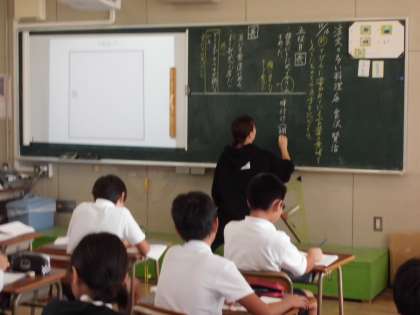 5年生は国語科の「注文の多い料理店」の学習に取り組んでいました。料理店の扉には何か不思議な注文が書かれていました。注文の本当の意味は何でしょう。子どもたちは楽しそうに読み取っていました。