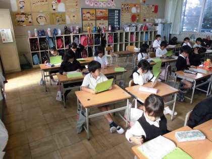 1時間目、1年生は教室で学習発表会のセリフの読み合わせでした。自分の担当するところを一人一人順番に読んで確認していました。初めての学習発表会がとても楽しみな様子でした。