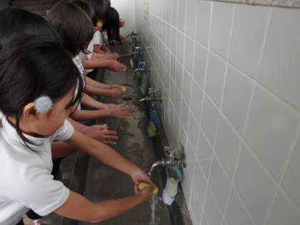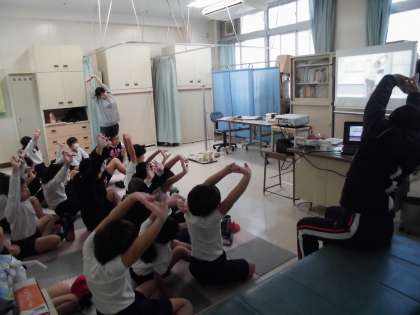 今週は各学年保健室で、3学期の発育測定を実施しました。発育測定の前に1,2年生は風邪予防で、手洗いの仕方、3〜6年生は、正しい姿勢のお話をしていただきました。