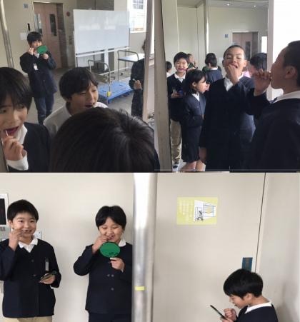 ほかの学年も一生懸命鏡を見ながらみがいていました。