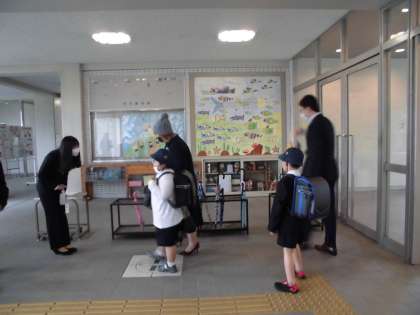 5月16日(土)に新1年生と保護者を迎えて入学オリエンテーションを行いました。校長先生から新1年生の担任の先生や関わりのある教職員の紹介をしていただきました。その後、1年生の教室に新1年生と保護者が一緒に行き、担任の先生と自分の席やロッカーの確認をすることができました。子どもたちは少し緊張している面持の中、マスクをしながらもしっかりとあいさつができ、ピカピカの教室や新しい机を見てとても嬉しそうにしていました。どのお子様も学校で勉強したり、友だちと遊んだりすることをとても楽しみにしている様子をうかがうことができました。