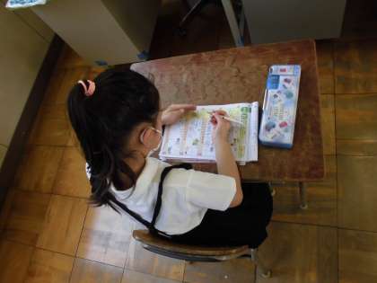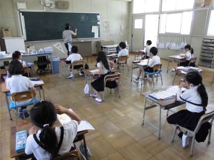 2年生は漢字の学習に取り組んでいました。風の漢字の読みや風を使った言葉を発表していました。最後に書き順を確認し、ドリルのお手本を見ながら丁寧な字できれいに書くことができました。とてもよく頑張っていました。