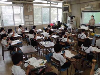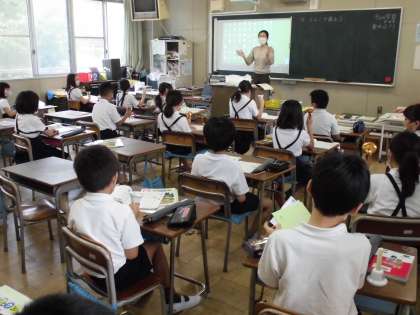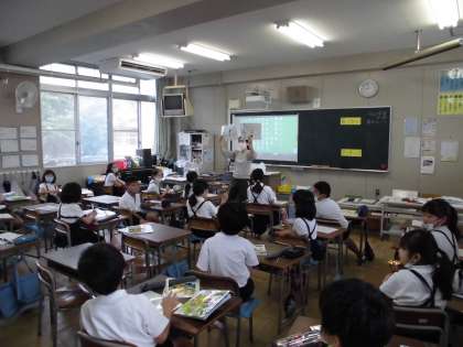 3年生は音楽科の学習でミュージックベルを使いました。子どもたち一人ひとりが「ド」「レ」「ミ」「ファ」「ソ」「ラ」「シ」「ド」のそれぞれのベルを持ち、音符の学習をしたり、ドレミの歌を演奏したりしていました。とても楽しそうに活動していました。