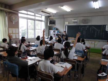 6年生は国語科の物語文「海のいのち」の学習に取り組んでいました。子どもたちはこれからの学習に向けて、登場人物はどのような人物で、またどんな海でもぐり漁師をしているかなど、子どもたち一人一人が読み取り、想像することができました。また、その考えを全員の前で発表したり、グループで話し合ったりしながら、「海のいのち」の読みを深めることができました。