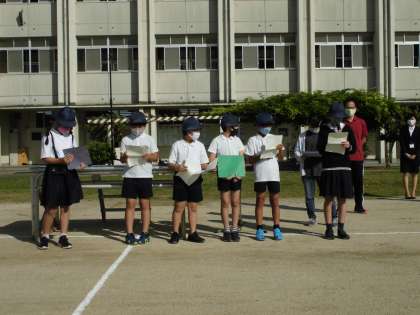 あいさつ週間であいさつをがんばった児童に計画委員会から表彰状が配られました。あいさつ週間がおわっても、自分から元気な声であいさつをする児童が増えました。これからもこのいい習慣が続くといいですね。
