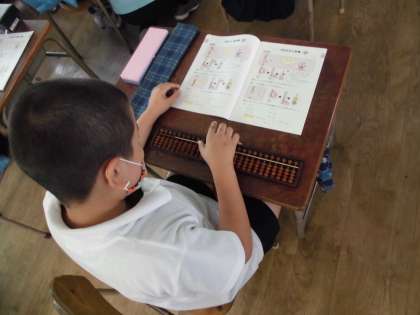 4年生は2時間目に算数科の学習でそろばんを使った計算に取り組んでいました。指先を器用に動かし、そろばんの玉をはじきながら計算をすることができました。