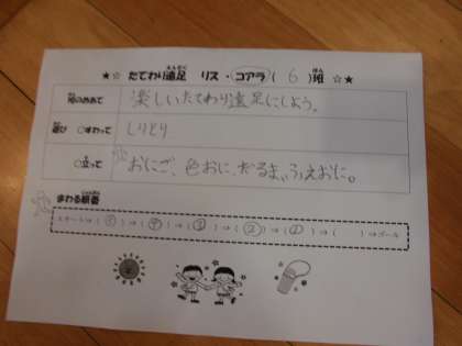 今日の児童集会は来週20日(火)に八幡屋公園へ行く全校たてわり遠足の話し合いをしました。6年生の班長を中心にグループのめあてを決めたり、オリエンテーリング後に何をして遊ぶかなど話し合ったりしていました。どの班の子どもたちも来週の遠足をとても楽しみにしている様子でした。