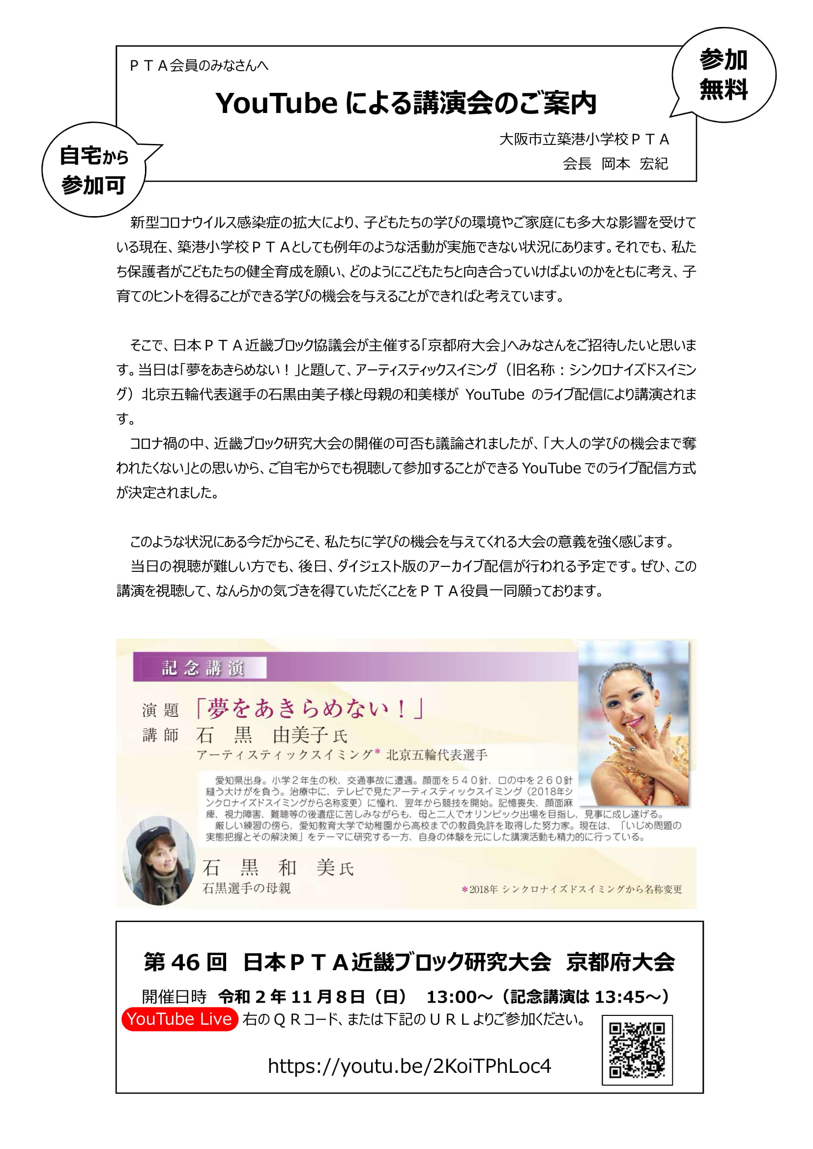 港区PTA協議会からの研修会のお知らせ(10月21日)