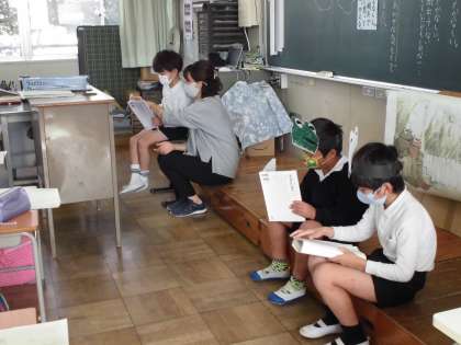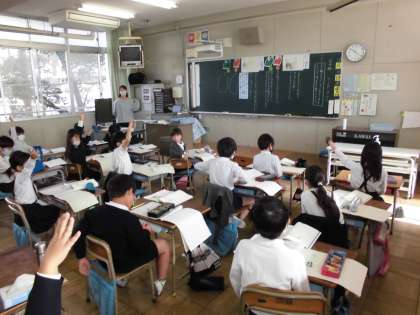 2時間目、2年生は国語科の学習に取り組みました。主人公のかえるくんとがまくんの気持ちを読み取り、二人のお手紙を待つ幸せの気持ちを読み取ることができました。子どもたちは主人公の二人になりきって本を上手に読んだり、その時の二人の気持ちを考え発表したりすることができました。しっかり手を挙げてたくさん発表することができました。