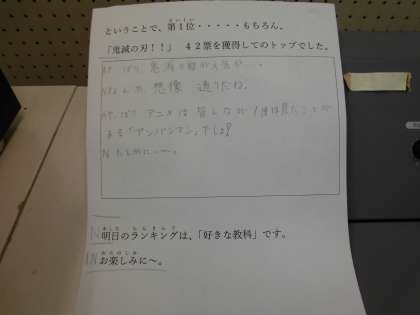 児童会の広報放送委員会は、「好きなアニメは何ですか?」のアンケート結果を放送していました。放送室でとても上手に放送することができました。