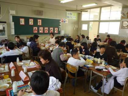 地域の方々に、毎朝登校の見守りをしていただいたり、野菜作りで植え方を教えていただいたり、土曜授業でゲストティーチャーとして来ていただいたりと、たいへんお世話になっています。感謝の気持ちを込めてこの日、一緒に給食を食べました。地域の方々が子どもたちのために、いろいろなところでお力をくださっていること、本当にありがたいです。これからも、学校と家庭、地域が力を合わせて子どもたちを育てていくことができるようにしていきたいと思います。地域の皆様、今後ともよろしくお願いいたします。