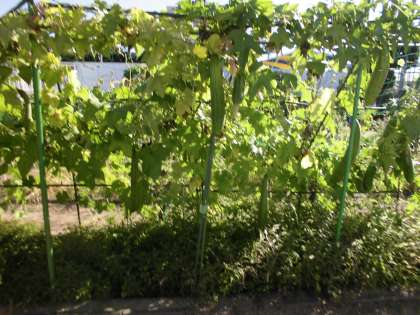 子どもたちが一生懸命にお世話をし、学習園のヘチマがとても大きくなりました。