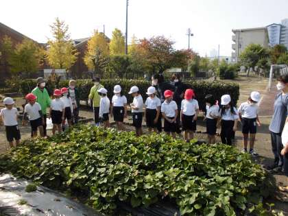 3時間目、2年生は地域の方が育てたさつまいもを掘らせていただきました。大きなおいもを見つけると「あったー!」「大きい!」と歓声を上げ、とても楽しそうに掘っていました。地域の皆様、ありがとうございました。