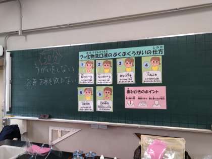 昨日、2時間目に4・5年生は歯の健康を守るため、フッ化物塗布を行いました。歯科医さんから虫歯のない健康な歯を保つことの大切さを教えていただきました。