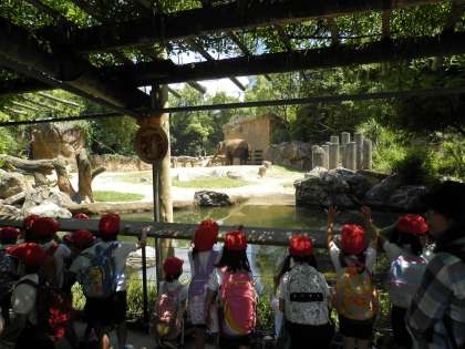 1年生は、今年の元旦で100周年を迎えた天王寺動物園に行きました。とってもよい天気で、暑いくらいでした。