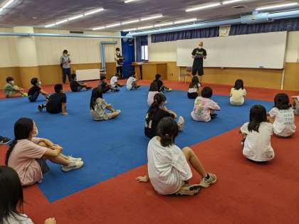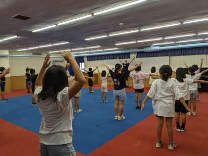 朝から雨が降っていたので、屋内で朝のつどいを行いました。皆で元気いっぱいラジオ体操をしました。