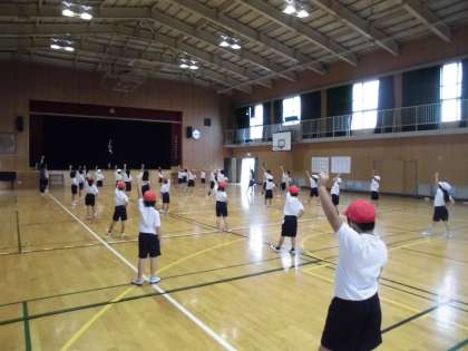 2時間目、1・2年生は講堂で運動会のダンスの練習に取り組んでいました。音楽に合わせてとても可愛らしく、そして軽快に踊っていました。どの児童も一生懸命に頑張っていました。