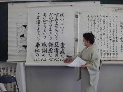 2・3時間目、ゲストティーチャーを招いて「伝統文化学習」を行いました。子どもたちは人と関わるときの自分の心の持ちようや、お辞儀の仕方やお箸の持ち方といった作法など、日本に伝わる伝統的な振る舞いについて学習することができました。