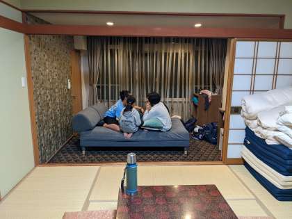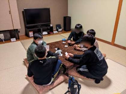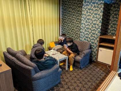 部屋着に着替え、トランプなどをして、夕食までの時間を過ごしています。