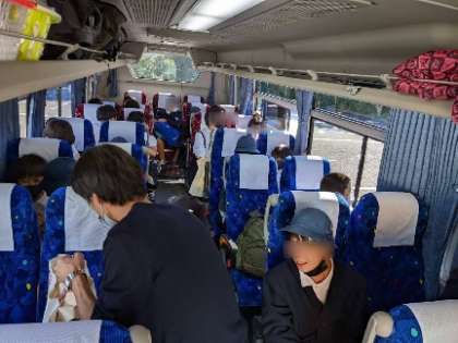 エネルギーランドを出て、学校へ帰ります。バスの中では、「もう帰るのかぁ」「1週間居たいなぁ」と言う子どもたち。皆元気です。